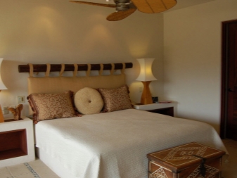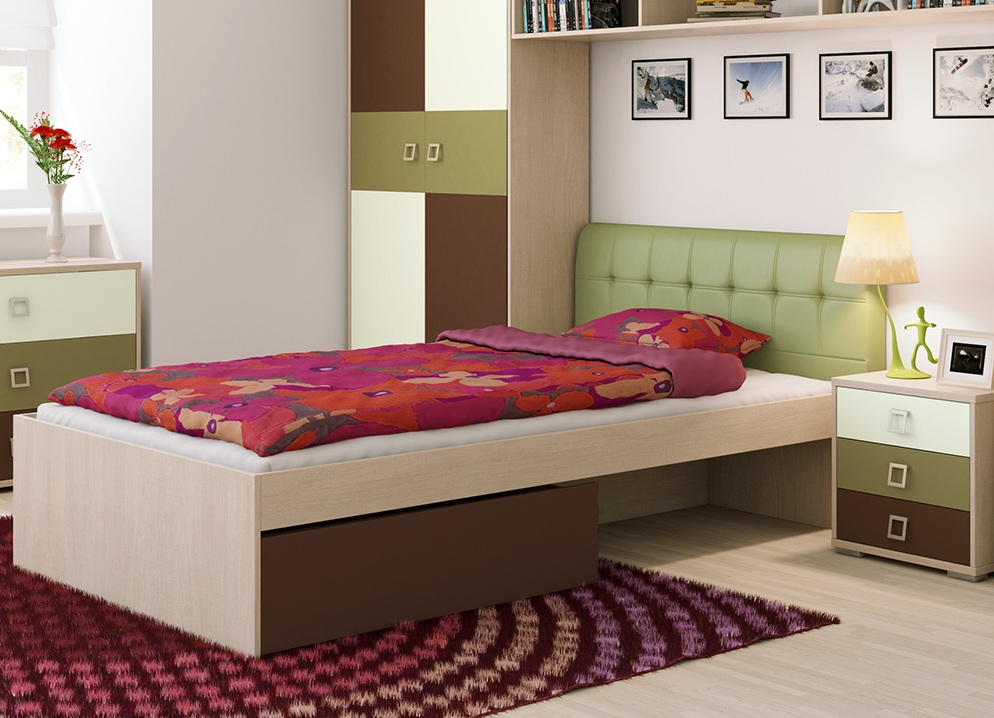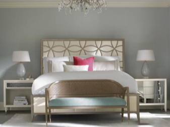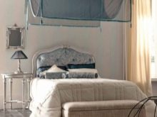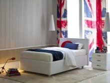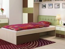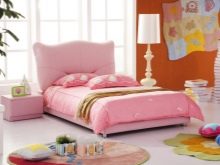 Für das Kinderzimmer wäre eine gute Lösung, ein Bett mit einem abgewinkelten Kopfteil (so etwas wie eine Ottomane) und Schubladen zu wählen. Für einen Erwachsenen - ein Möbelset mit einem Hocker und einem breiten Kopfteil.