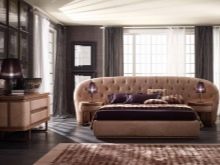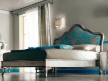 - Ungewöhnlich Zusammenfassung die Form ist den Kreativen eigen, für die die Ästhetik des Schlafzimmers an erster Stelle steht. Es kann eine Kombination aus einem halbkreisförmigen Rücken mit geschnitzten Elementen sein.