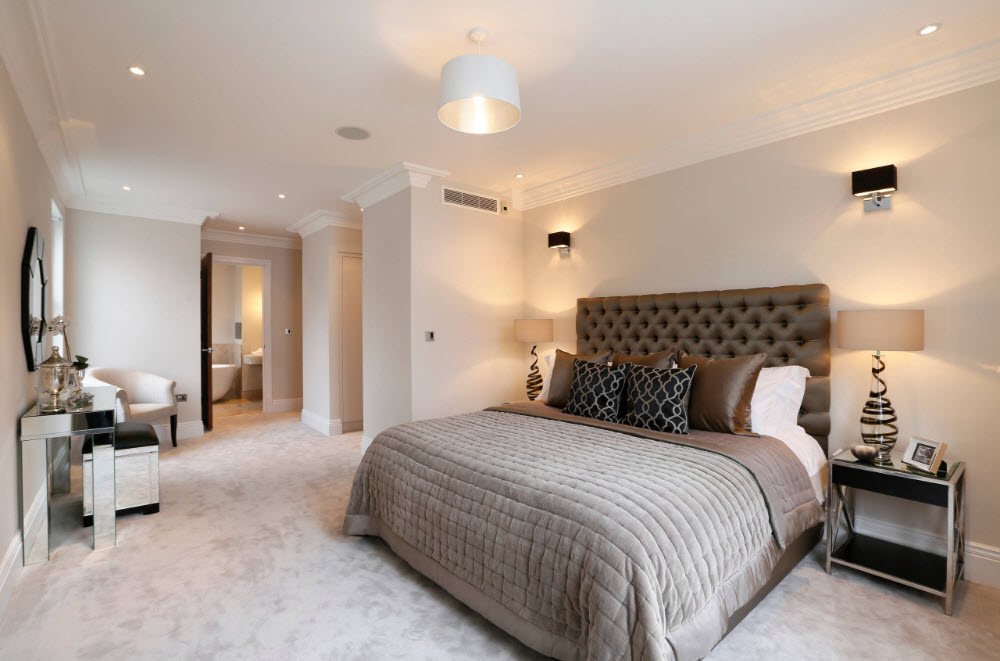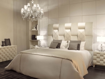 Das Schlafzimmer ist das offenste und komfortabelste Zimmer im Haus, so dass die Möbel darin zu 100% mit den Vorlieben der Eigentümer übereinstimmen sollten. Ein Bett mit einem weichen Kopfteil ist die ideale und unentbehrliche Option für jedes Schlafzimmer, das ein helles Design und eine breite Funktionalität hat. Es ist nicht nur angenehm, das Wochenende zu genießen, sondern auch an einem Wochentag vor dem Zubettgehen ein interessantes Buch zu lesen, das auf dem weichen Rücken liegt.