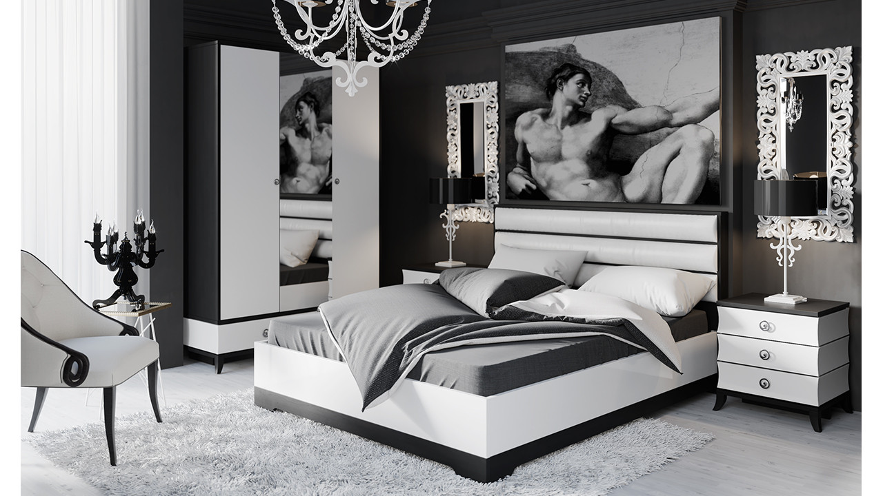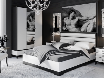 - Weißes Bett passt perfekt zu allen Farben des Regenbogens. Es kann mit den dunklen Elementen im Raum kontrastieren - eine Akzentwand, dunkle Vorhänge oder Textilien,oder kann prägnant das makellose Bild des Schlafzimmers ergänzen.