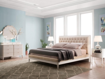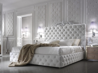 Betten mit einem weichen Kopfteil sehen besonders gut im Inneren des Schlafzimmers aus. Zum ersten Mal erschienen solche Betten vor dreitausend Jahren v. Chr .: Ägyptische Pharaonen verbrachten ihre Ferien in riesigen Kisten mit einem weichen Rücken. Ihre Wiedergeburt des Modells erhielt vor ein paar Jahrhunderten, als Rokoko und Barock mit echtem Luxus in der Außendekoration von Möbeln in Mode kamen.