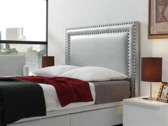 - Eine vielfältige Auswahl an Größen, Formen und Kopfteilen. Es kann extrem hoch sein - fast bis zur Decke oder so niedrig wie möglich, aber ausreichend für einen angenehmen Kontakt mit ihm, gepolstert in Natur- oder Kunstleder, Velours, Samt und sogar Samt, Satin oder jedem anderen Möbelstoff;