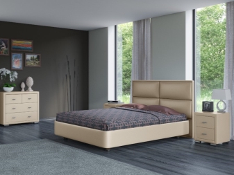 - Die Kosten für Modelle von Betten mit Lederausstattung wird viel höher sein als das Analog von Spanplatten. Aber es ist durchaus möglich, ein Bett mit einem weichen Rücken und einem attraktiven Preis zu finden.