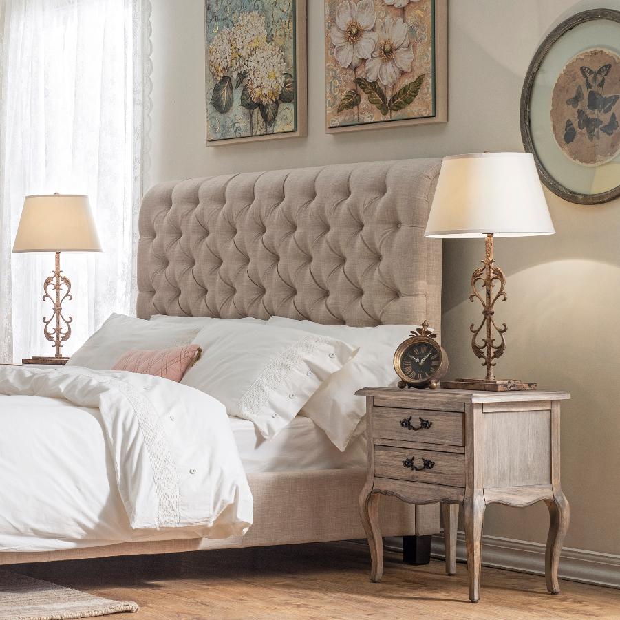 - Schwedisch beliebtesten Marke - Ikea mit der Oppland KollektionDarin gibt es ein paar Modelle mit einem textilen Kopfteil.