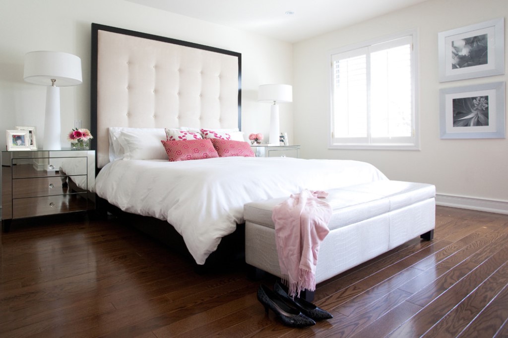 - Haben Rosa viele Schattierungen, kann es gedämpft oder "schreiende" Farbe, zurückhaltend, tief, zart und alle anderen sein. Im Schlafzimmer des Mädchens ist es passender als je zuvor, aber es sieht auch attraktiv für einen Erwachsenen aus, wenn Sie eine Rückenlehnenbespannung aus Samt oder Naturleder und einen lilaeren Rosatonus wählen.