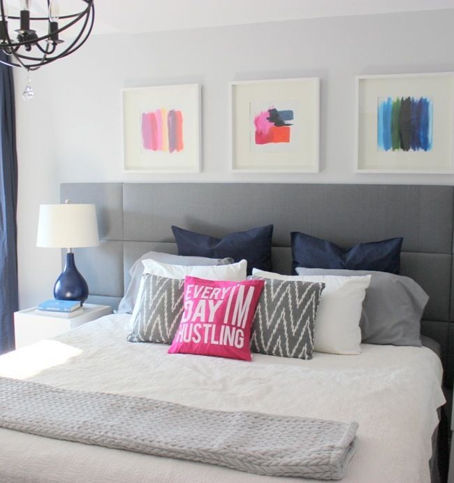 Sie können den Rücken selbst dekorieren - um das "nackte" Kopfteil aus Holz mit Möbelstoff mit Zeichnungen, Mustern oder einer Applikation zu bedecken. Eine gute Idee ist es, die Rückseite mit großen Knöpfen zu dekorieren. Sie können ein Paar Kissen auf einer festen Basis befestigen: wenn nötig, sind sie leicht in einen Schrank zu legen oder zum Waschen zu entfernen.