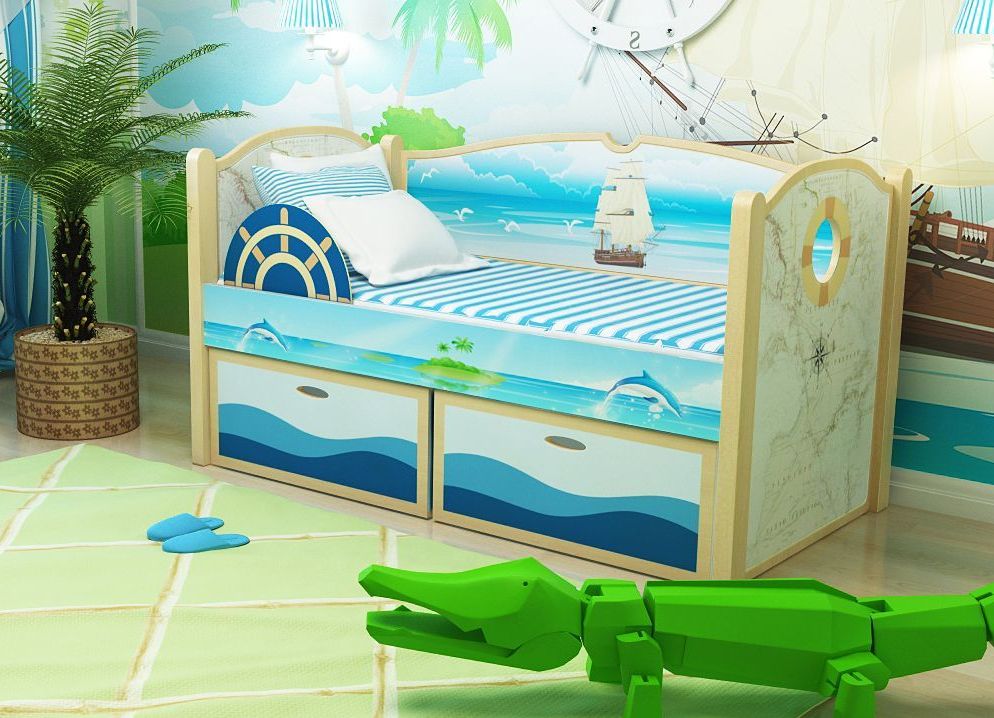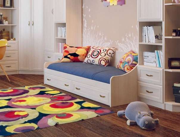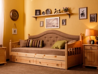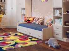 Es ist nicht ungewöhnlich, ein Modell mit drei Rückenlehnen und im Kinderzimmer zu installieren. Und das ist nicht verwunderlich, denn dieses Modell ist sehr praktisch und sicher für das Kind - weiche Seiten schützen es von drei Seiten. Darüber hinaus sind die Kindermodelle der Betten oft mit komfortablen geräumigen Schubladen ausgestattet, die Sie an Kinderbetten, Spielzeug und andere Dinge anpassen können.