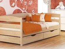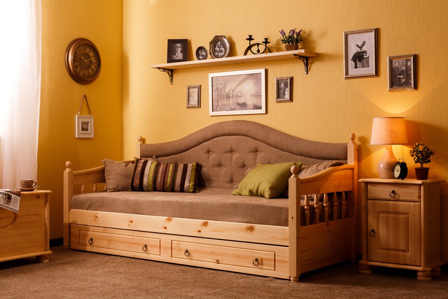 Und wenn Sie dieses Modell des Bettes so installieren, dass die Seitenlehne an der Wand steht, schützen wir die Wandverkleidung vor dem Abwischen und werden auch in der kalten Jahreszeit vor Zugluft, kalten und feuchten Wänden geschützt. Dieses Modell ist in der Lage, völlige Ruhe und gesunden Schlaf zu bieten.