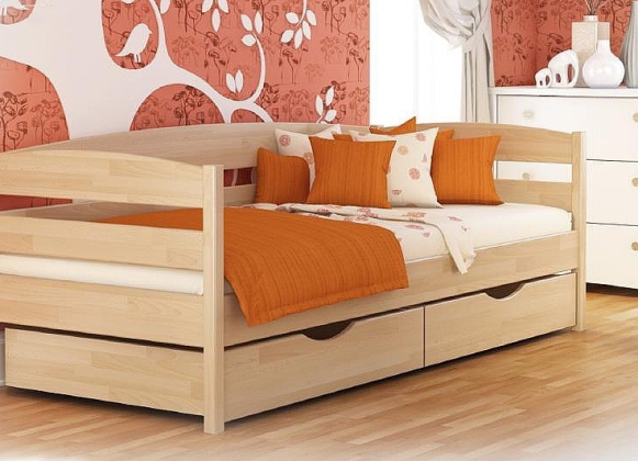 Elite-Modell mit drei Rückseiten kann aus Massivholz gefertigt werden. Dieses Bett ist umweltfreundlich, absolut gesundheitlich unbedenklich und dennoch besonders langlebig und langlebig. Die Dekoration der Rücken mit eleganten Schnitzereien verleiht ihm einen besonderen Luxus und Raffinesse.