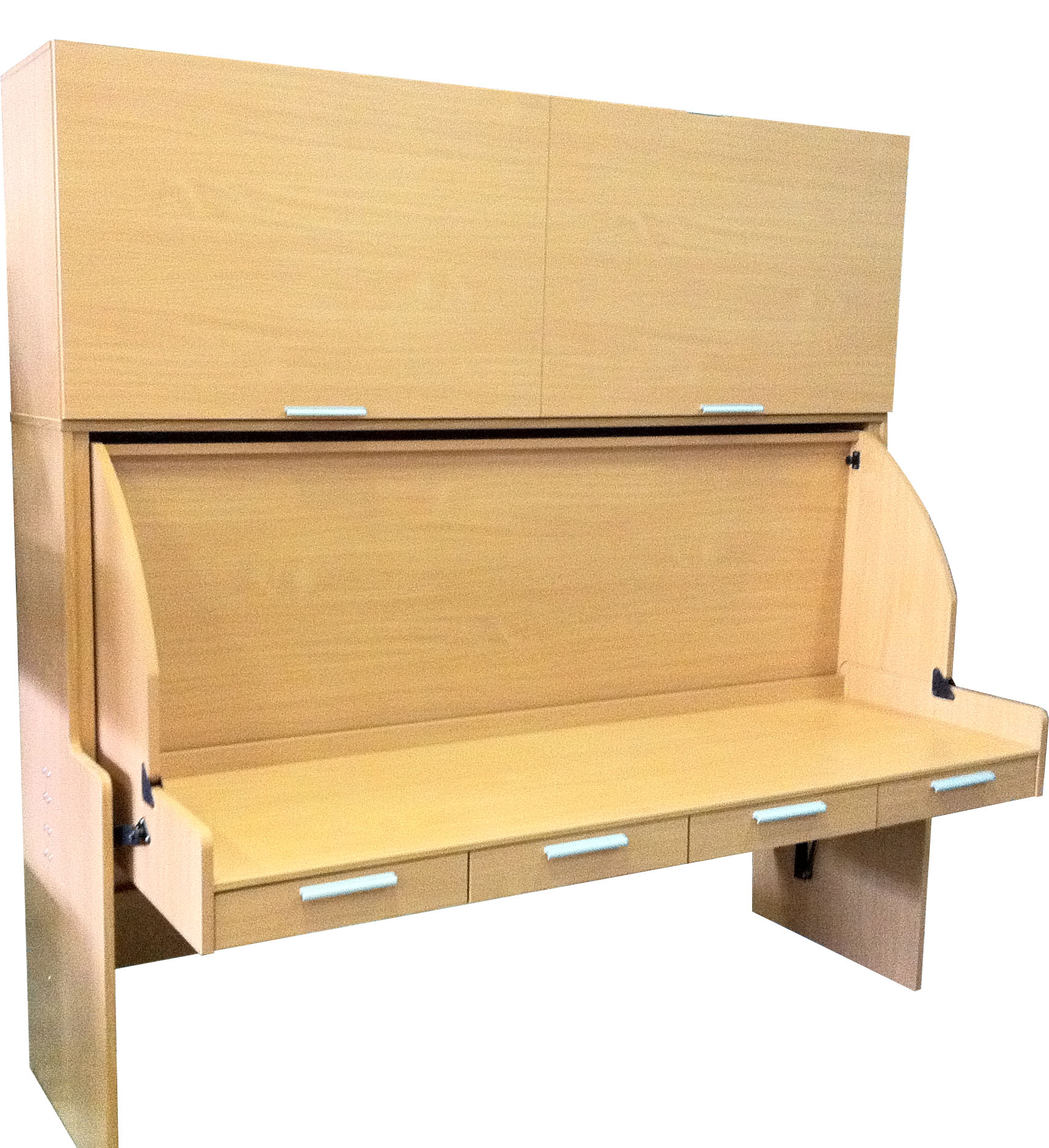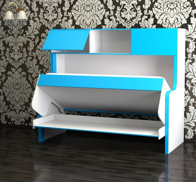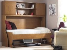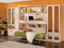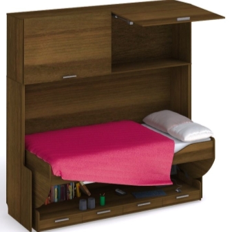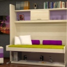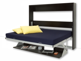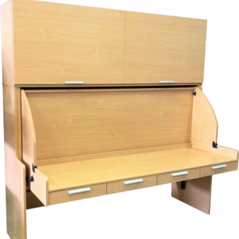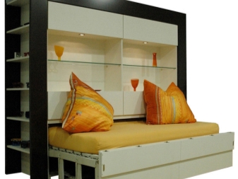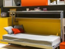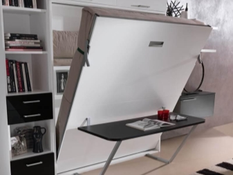 Beistelltisch ist eine komplexere und kompaktere Modifikation von Möbeln. Das Design beinhaltet das Vorhandensein eines speziellen Mechanismus, mit dem das Bett im Schrank versteckt ist.