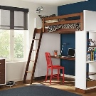 Besonderheit Hochbetten - Die Lage des Schlafbereichs auf der zweiten Etage.Es ist bedingt möglich, solche Konstruktionen nach Art der Treppe zu trennen: faltbar, einseitig und starr befestigt. Bei der Ausstattung von Kinderzimmern sollten die ersten beiden Typen nicht zur Vermeidung von Verletzungen verwendet werden.