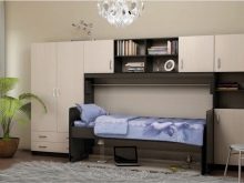 Es gibt verschiedene Arten von Garderobenbetten: versenkbar, mit vertikaler Neigung, versenkt, mit der Rotation der Räder. Die Liste kann abhängig vom Transformationsmechanismus erhöht werden.