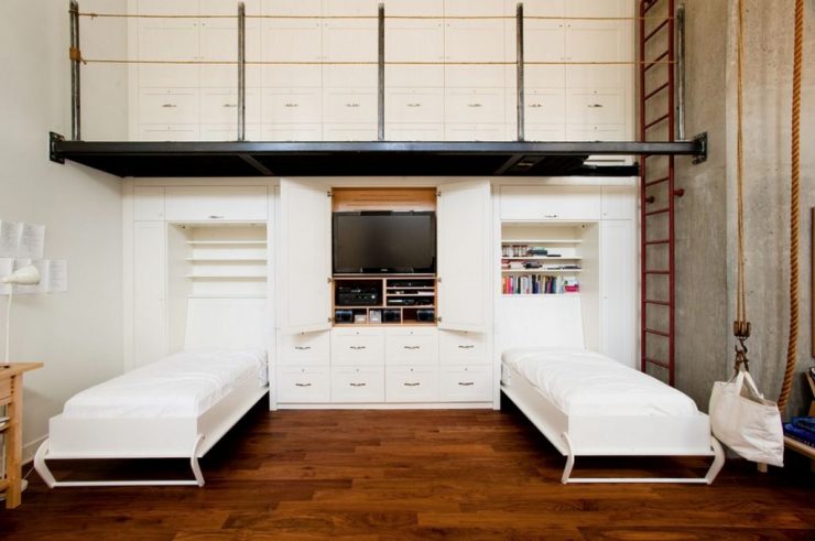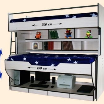 Einige glauben, dass diese Art von Möbeln nicht von einem guten Leben gekauft wird. Deshalb Multifunktionale Designs sind ein Kompromiss zwischen Funktionalität und Ästhetik. Variationen für die Dekoration von Kinderzimmern sind beliebter, vor allem wenn mehr als zwei oder drei Kinder in einem Raum wohnen. Alle Benutzer weisen auf hervorragende Platzeinsparungen hin.