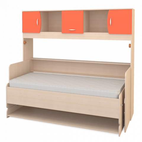 Die Modelle des Unternehmens sind mit einem Hebebett mit ausgezeichneter Balance und einer Arbeitsfläche ausgestattet, die dazu bestimmt ist, einen Platz zum Schreiben und Installieren eines PCs zu organisieren. Sie können Optionen mit verschiedenen Arten von Kisten und Regalen für die Lagerung von Dingen wählen. Bei der Herstellung von Armaturen aus eloxiertem Aluminium. Der Körper besteht aus Spanplatten.