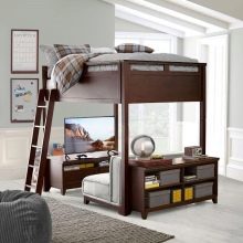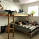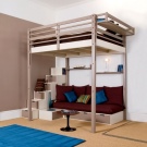 - Stand. Jeder weiß, wie ein Etagenbett aussieht. Für die Loft-Stil Betten wurden entworfen, die Höhe ist die gleiche wie zweistöckig, nur an der Unterseite statt der Stahlraum - leerer Raum. Freiraum wird verwendet, um andere Möbel zu installieren.