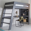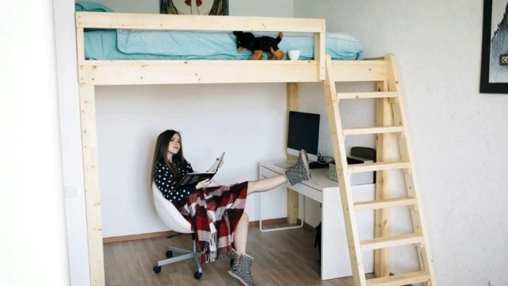 Dieses Modell wird aktiv im Design eines Kinderzimmers oder eines Teenagers im Loft-Stil verwendet. Das Bett erhielt diesen Namen wegen der hohen Platzierung. Der Liegeplatz hat ein spezielles Design auf hohen Beinen, das es praktisch unter einer Decke hebt. Sie finden Modelle mit Einbauschränken, die sich unter dem Bett befinden. Unten können Sie auch den Arbeitsplatz einrichten.