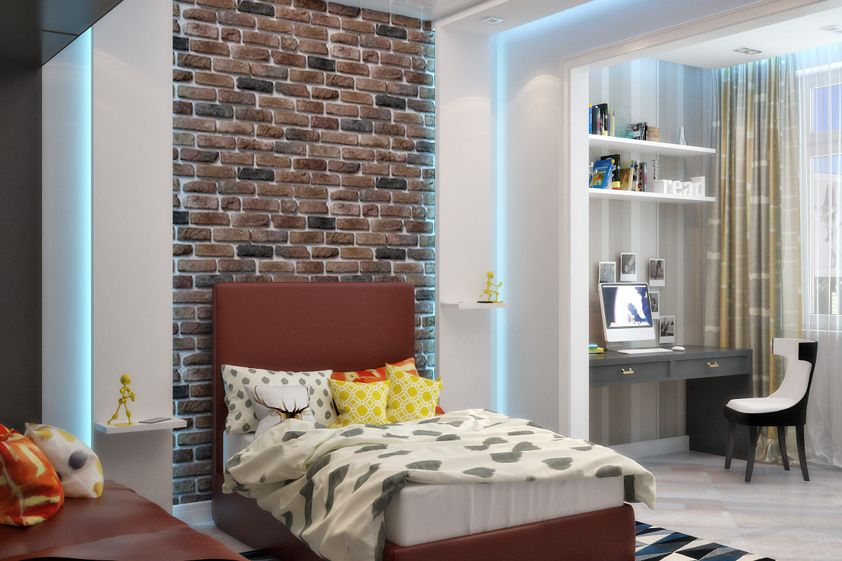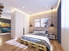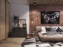 Besonders beliebt ist der Loft-Stil. Es eignet sich für kompakte und geräumige Zimmer. Das Schlafzimmer in dieser Richtung sieht stilvoll und ungewöhnlich aus.