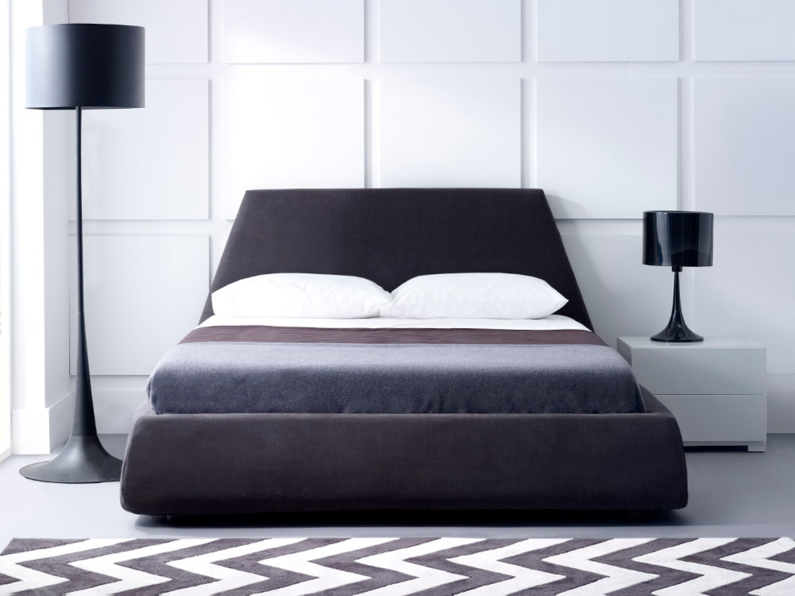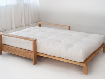 Dieses Bett ist ideal für ein kompaktes Zimmer. Genau wie ein Bett in diesem Stil sollte das Sofa eine klare und strenge Form haben. Färbung - monophon. Designer werden bei der Gestaltung solcher Möbel von geradlinigen Formen geleitet. Der Rahmen des Produkts kann aus Metall oder Naturholz hergestellt werden - dies ist eine ideale Option für Loft.