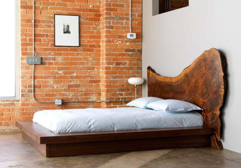 Die meisten Betten für diesen Stil sind aus natürlichem Holz. Dies ist die häufigste Option für Loft-Möbel. Der Baum sollte grob, natürlich und unverarbeitet aussehen. Holzfarbe kann anders sein.