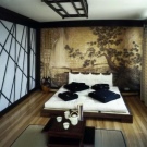 - Chinesisch - bevorzugt Möbelsets mit eingelegter oder lackierter Oberfläche, verziert mit Schnitzereien. Primärfarben sind rot und schwarz. Vermeiden Sie scharfe Ecken, verwenden Sie Tagesdecken, die die Ecken des Bettes verbergen.