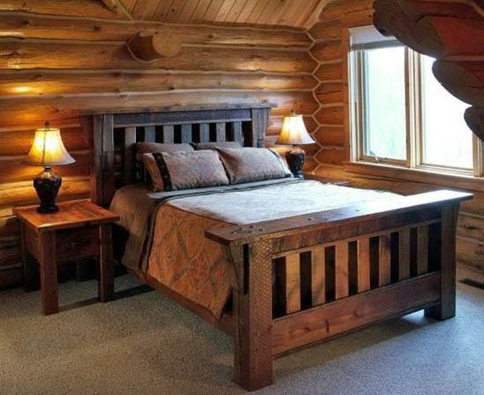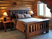 - Chalet - Installieren Sie einfache und einfache Möbel. Die beste Option ist ein großes Holzbett, das mit Textilien aus Naturstoffen dekoriert ist. Verwenden Sie gedämpftes Licht auf Kosten der Designer Lampenschirme.