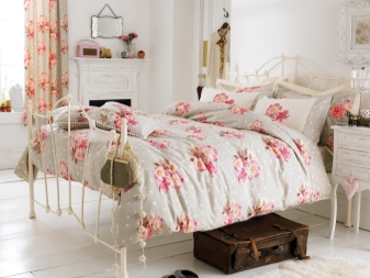 - Französisch - Das Schlafzimmer wird die Verkörperung der Romantik sein. Bevorzugt wird ein antikes oder künstlich gealtertes Möbelset. Sowohl Holz- als auch Metallbetten mit geschmiedeten Elementen können verwendet werden.