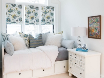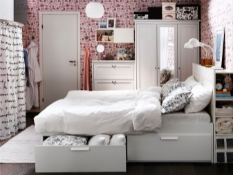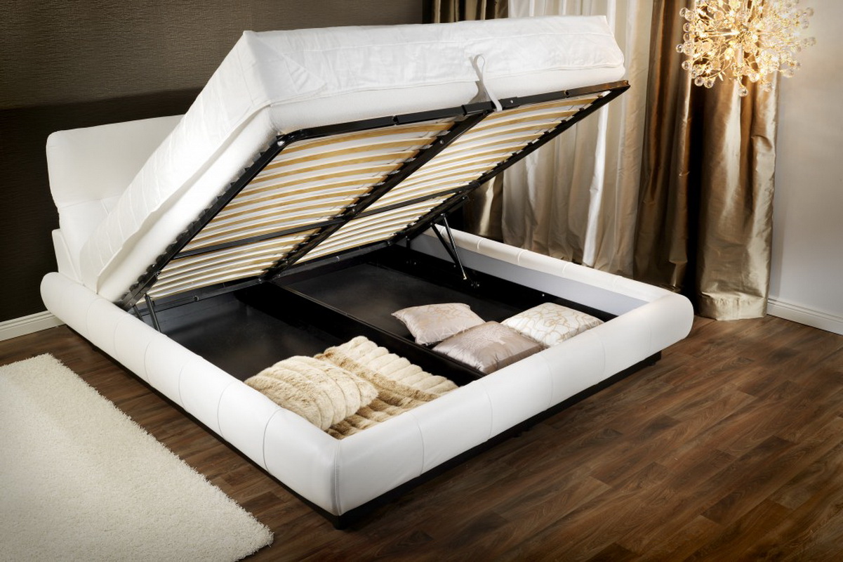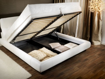 - Verfügbarkeit von zusätzlichem Speicherplatz und Bettwäsche. Diese können Schubladen oder ein Hebemechanismus sein, durch den das Bett aufsteigt und Zugang zu dem Innenraum unter dem Bett öffnet.