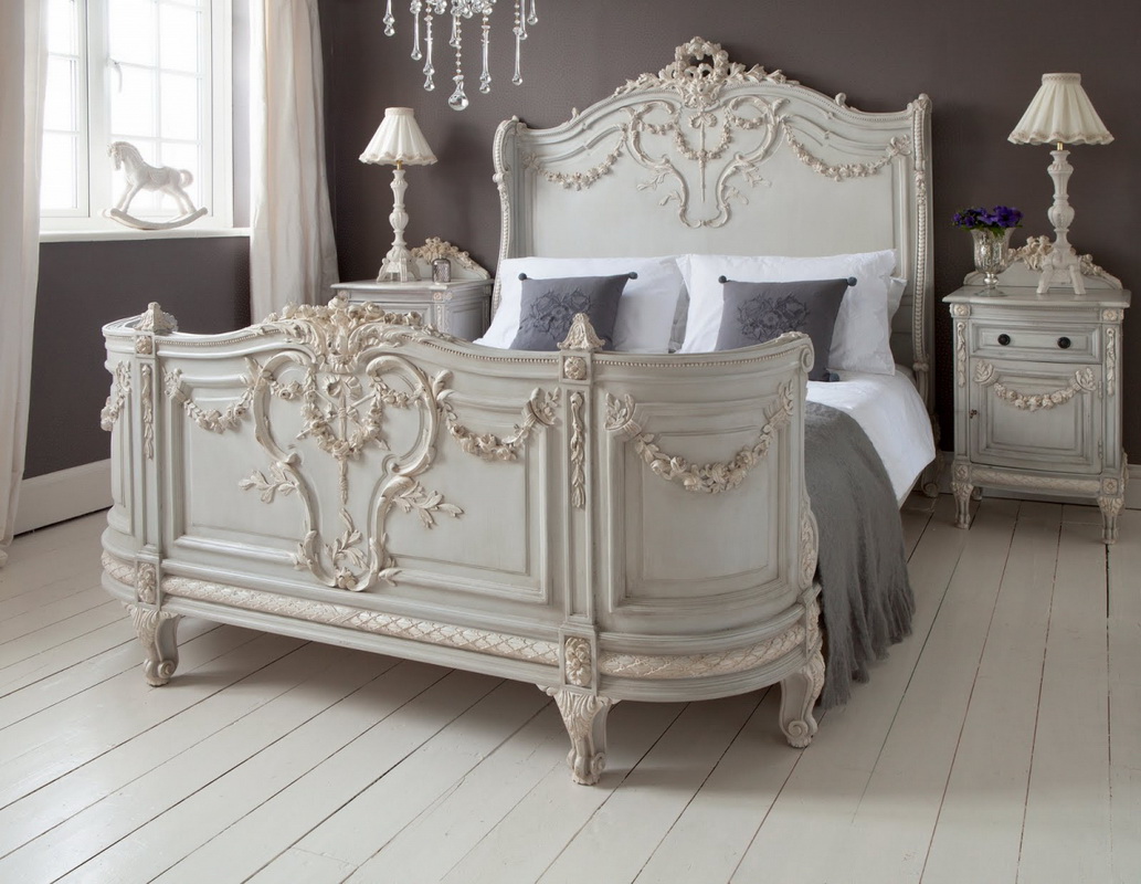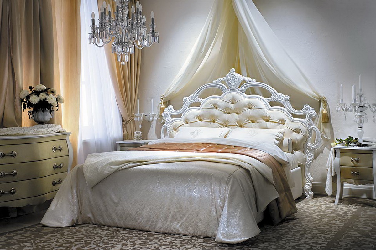 - Rokoko - bevorzugt elegante Möbel mit abgerundeten Ecken. Vergoldung, Bronze und Schnitzerei werden verwendet, um den Kopf des Bettes zu schmücken. Die lackierten Oberflächen werden verwendet.