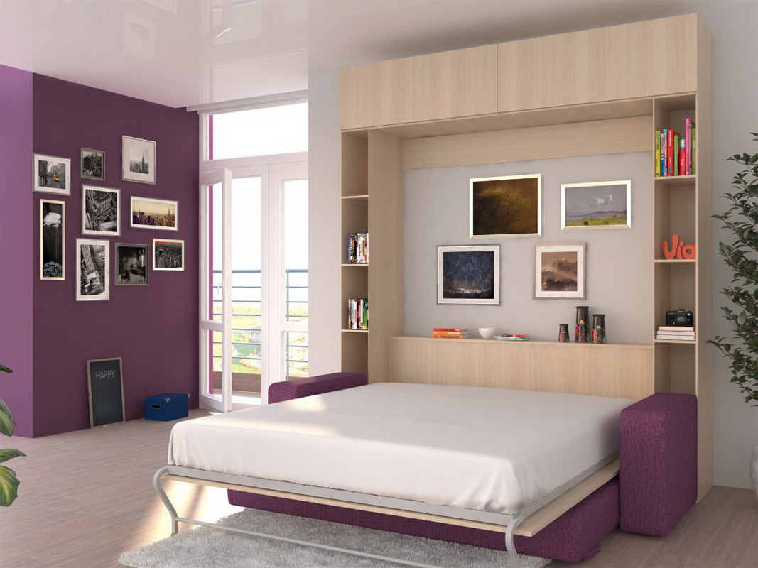 - Verwandelndes Bett wird ein ausgezeichnetes Modell für ein kleines Schlafzimmer sein, wie es in ein Bücherregal oder eine Kommode verwandelt wird. Aufgrund seiner Kompaktheit bietet dieses Modell mehr Platz für aktiven Zeitvertreib.
