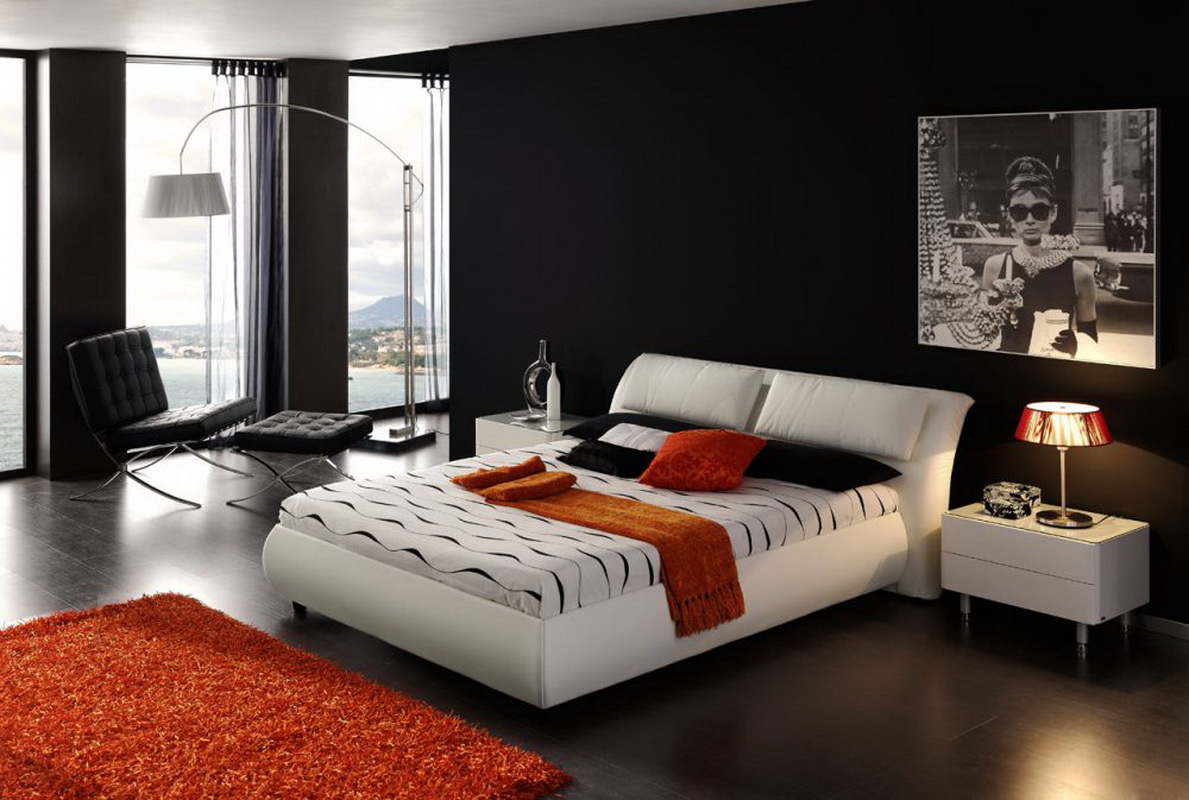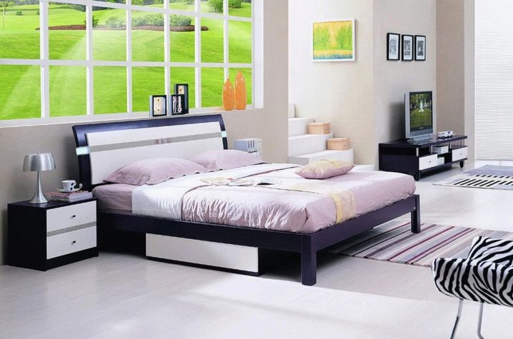 - Minimalismus - Möbel sollten funktionale und zurückhaltende Qualitäten haben, die beste Option ist ein Bett mit Schubladen. Primärfarben: schwarz, weiß und grau.