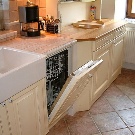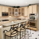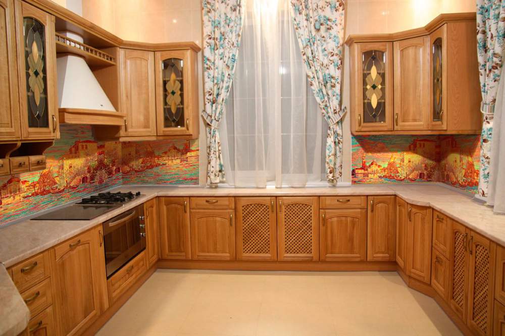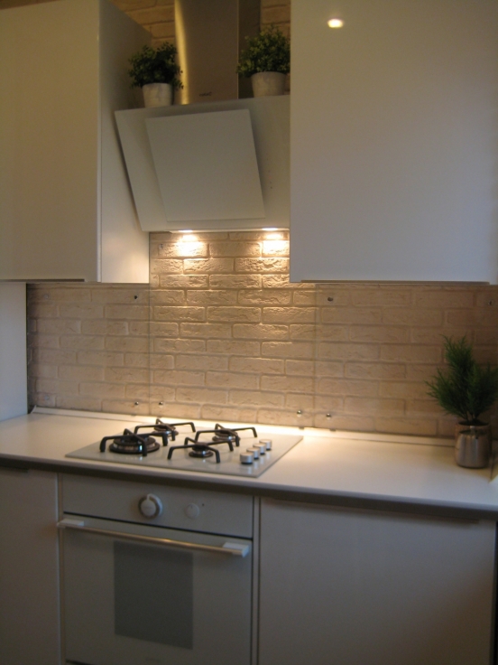 - Natursteinfliesen gut in der Herstellung von Küchen im klassischen Stil und Land. Nachahmung von Kunststein sollte von natürlichen Rassen kaum zu unterscheiden sein.