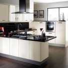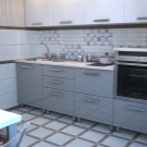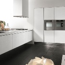 - Feinsteinzeug - die haltbarste und haltbarste Art von Fliesen. Im Gegensatz zu Keramikfliesen verblasst dieses Material nicht mit der Zeit, ist weniger anfällig für die schädliche Wirkung von Feuchtigkeit und ist widerstandsfähig gegen mechanische Beschädigungen. Aber dieses Material ist ziemlich schwierig zu handhaben und zu schneiden und manchmal zu legen, weil es ziemlich schwer ist. Porzellanfliesen sind sowohl für die Schürze und Arbeitsplatte als auch für den Boden gut geeignet. Die Hauptnachteile der Porzellanfliesen - Zerbrechlichkeit während des Transports, hoher Preis, kleine Auswahl.
