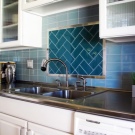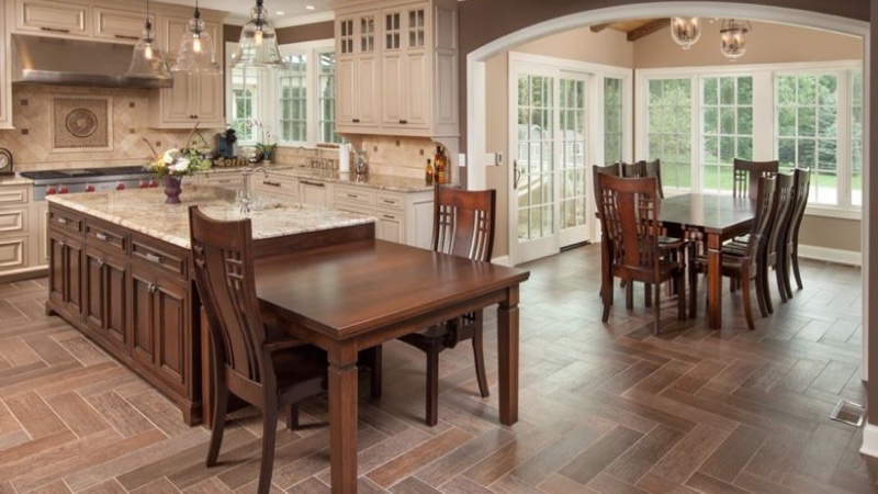 - Fischgrätenmuster - ist eine Methode der Montage einer rechteckigen Fliese, sehr erinnert an Parkett. Diese Methode wird sowohl für Arbeitswand und Küchenschürze als auch für die Verlegung von Fliesen auf dem Boden verwendet.