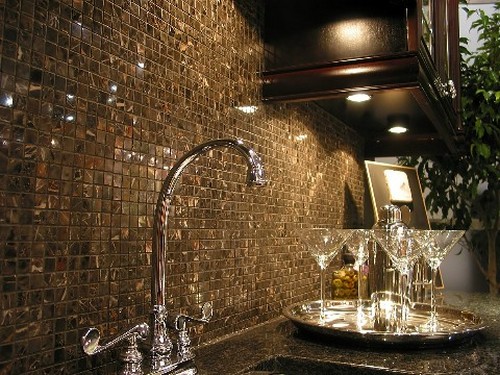 - Mosaikfliese Es besteht aus einer großen Anzahl von Komponenten, die nicht mehr als 5 Zentimeter groß sind. Der Hauptvorteil dieses Materials ist, dass Sie mit seiner Hilfe die unerwartetsten Zeichnungen und Kompositionen erstellen können, die sehr lebendig und beeindruckend aussehen werden.Die Auswahl an Farbmosaik ist nahezu unbegrenzt. Diese Art der Beschichtung ist beständig gegen äußere Einflüsse und verschlechtert sich nicht unter dem Einfluss von chemischen Reinigungsmitteln und Feuchtigkeit. Mosaik wird in der Regel als Wanddekor verwendet.