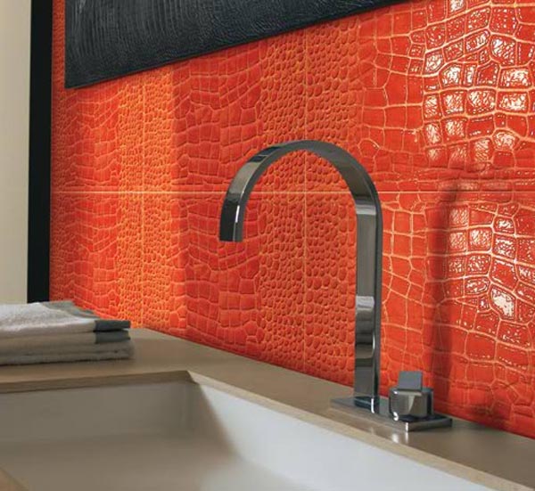- Exotische Liebhaber werden sich für Fliesen interessieren, die unter der Haut exotischer Tiere hergestellt werden: Zebras, Reptilien, Elefanten usw. Dieses Finish wird sehr ungewöhnlich aussehen.Es passt gut zu High-Tech-Stil und Minimalismus.