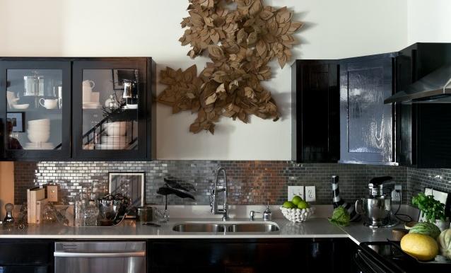 - Fliesen unter dem Metall sind ebenfalls sehr beliebt. Geeignet für die Küche, in Übereinstimmung mit den Trends der Moderne gemacht.