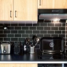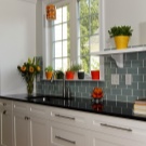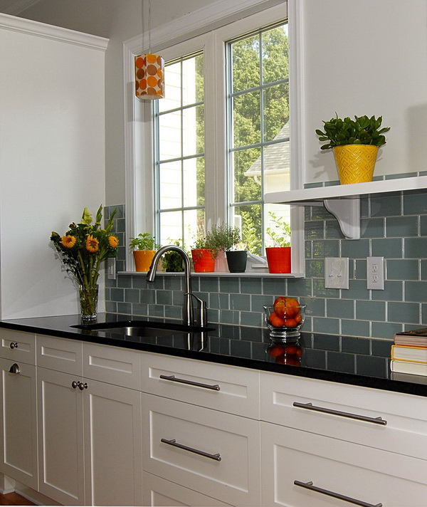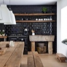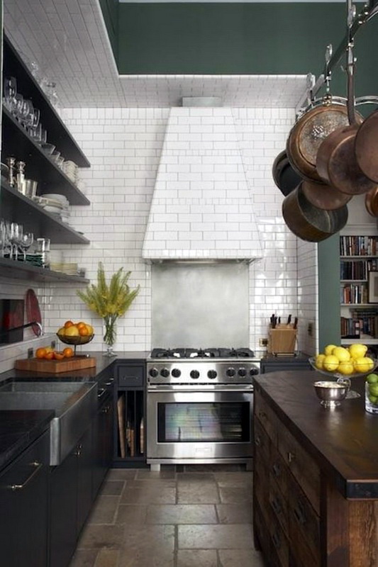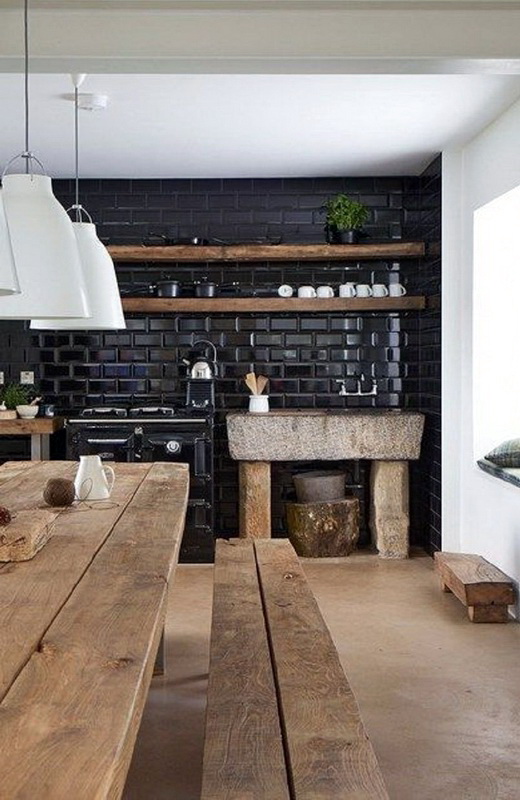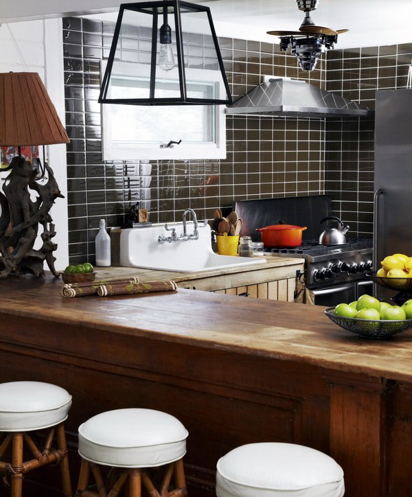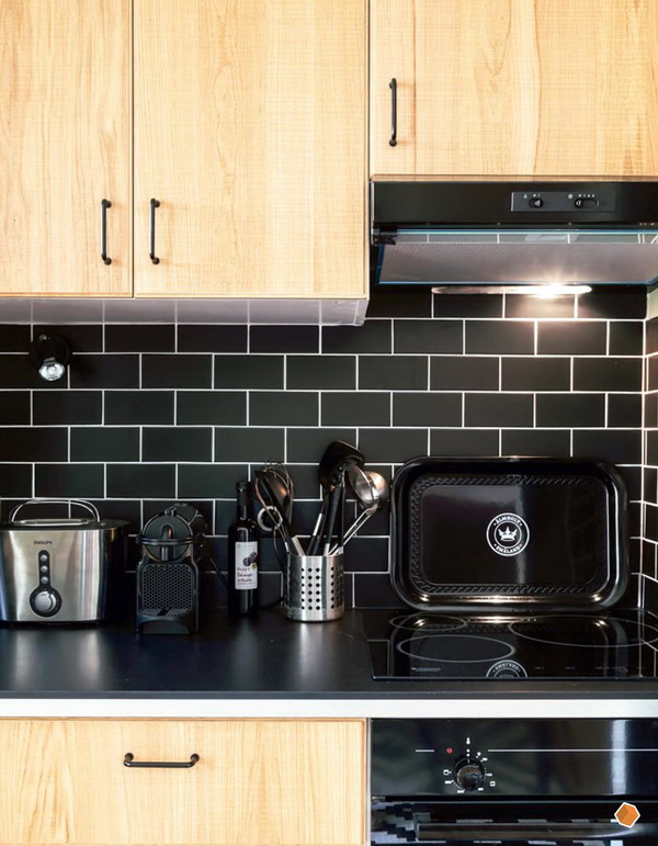 Die mit schwarzem "Hog" verzierte Küche wirkt sehr modern, besonders wenn die Küchenmöbel dazu kontrastieren. Die grüne Fliese wird dem rustikalen Stil entsprechen, man kann über blaue Farbtöne sagen, dass sie hell aussehen und alle Aufmerksamkeit auf sich selbst gerichtet ist. Aber die meisten Hausfrauen bevorzugen elegante und lustige rote Schürzen.