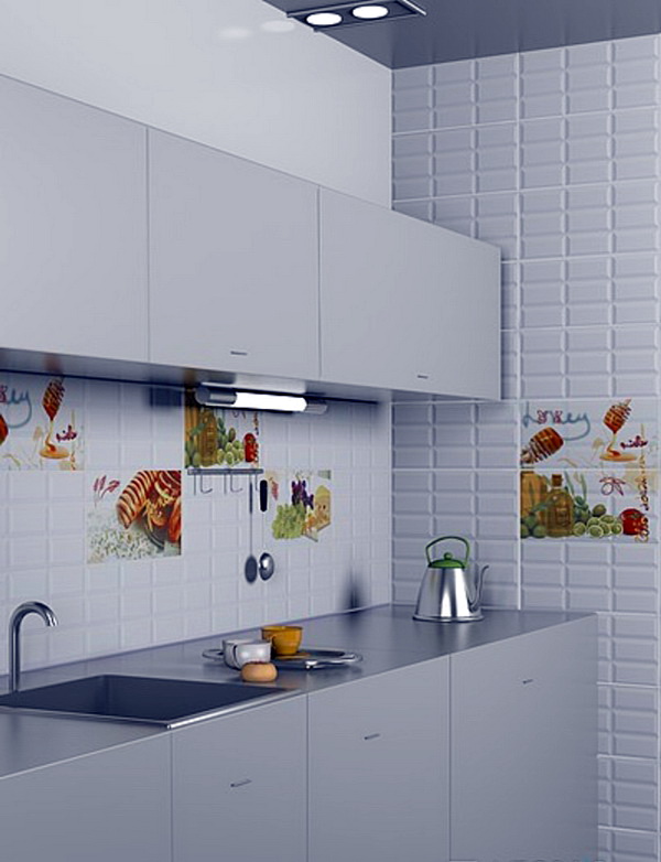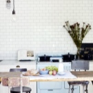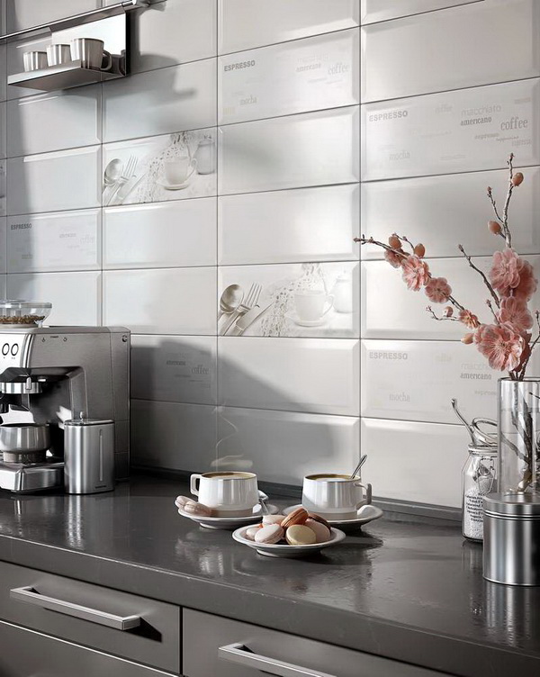 Haben Sie keine Angst, weiße Fliesen in der Küche zu kaufen, denn die Pflege für sie wird nicht schwieriger als die Pflege von Fliesen jeder anderen Farbe. Immerhin gehört dieses Material zur Veredelung zu einer Anzahl der praktischsten, und weder Glasur, noch Staub werden sich auf der Glasur niederlassen, die eine Fliese "Schwein" bedeckt. Und wenn eine Verunreinigung darauf erscheint, dann wird es leicht mit einem feuchten Tuch entfernt.