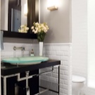 Um mit den Fugen fertig zu werden, können Sie die Fliese einfach schneiden, wonach die Ecke zur Seite gemacht wirddas ist nicht geschnitten, und die andere Seite sollte in den Reihen verkleidet werden. Trimmen kann durch kleinere Fliesen ersetzt werden. Manchmal werden zu diesem Zweck die Sammlungen mit speziellen quadratischen Einlagen (halbe Fliesen) ergänzt. Aber keine Sorge, wenn du sie nicht hast, kannst du in die andere Richtung und an den schwierigsten Ort gehen, um das Layout um 90 Kacheln umzukehren.
