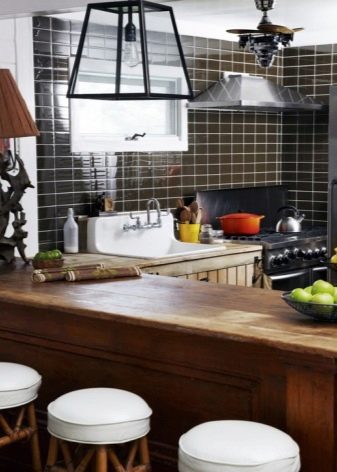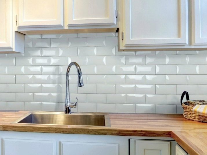 Zu den Nachteilen der "Schweinekachel" gehören die Vertiefungen, die sich an der Verbindungsstelle bilden - sie können verschiedene Verunreinigungen ansammeln, die sich nicht so leicht von dort entfernen lassen. Aber solch ein Nachteil sollte kein Grund sein, sich das Vergnügen zu verweigern, eine Küchenschürze mit einer "Schwein" -Fliese zu verzieren, weil es viel mehr Vorteile hat.