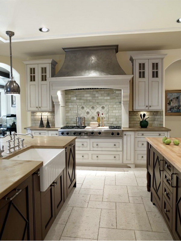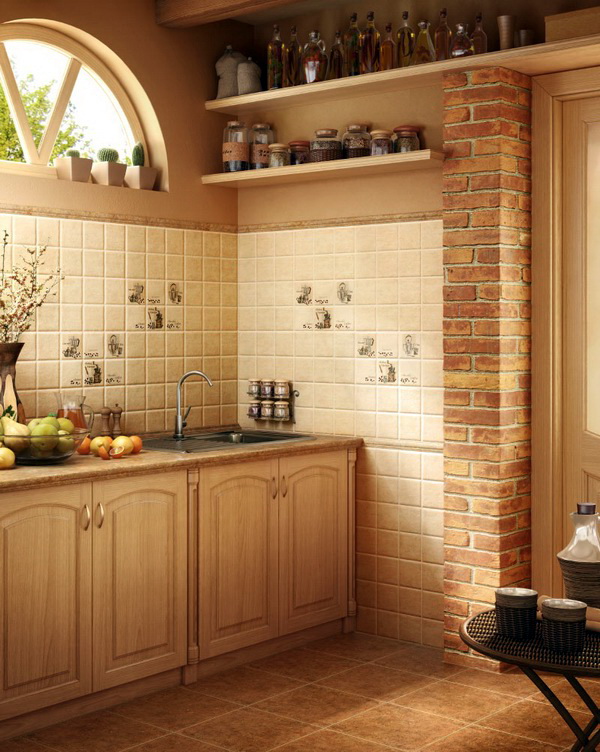 Wenn Sie einen alten Küchenstil gewählt haben, ist es am besten, Fliesen mit Craquelé-Glasur zu kaufen, wodurch sich kleine Risse auf der Oberfläche der Fliesen bilden. Einige Designtrends eignen sich am besten in Form von "Hog", der eine matte Oberfläche hat. Die Kachel der neutralen Töne wird universell für jedes Interieur werden: