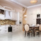 - Wenn Ihre Wohnung und dementsprechend die Küche in einem klassischen Stil eingerichtet sind, wählen Sie weiße, schwarze, goldene und silberne Fliesen. Sie können mehrere Basreliefkacheln verwenden, um Akzente zu setzen.
