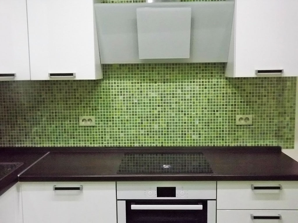 - Mosaikfliese. Kleine bunte Fliesen, die sehr schön sein können, um eine Schürze oder Arbeitsplatte zu gestalten;