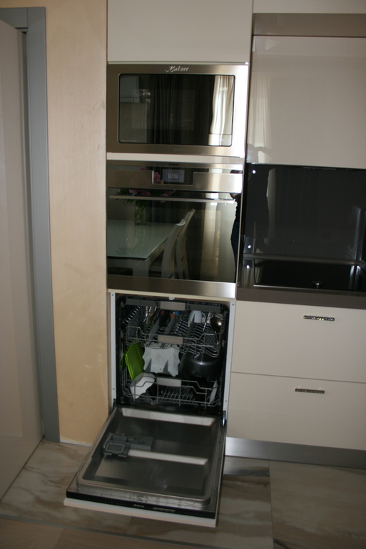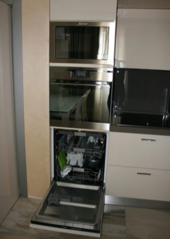 - Drei in Eins. Diese Option hat die Funktionalität aus offensichtlichen Gründen erhöht. Mit dem Kauf eines Gerätes erhalten Sie sofort die drei notwendigen Elemente von Küchengeräten. Ein modernes Kochfeld wird dem Ofen und dem Geschirrspüler hinzugefügt. Die meisten Modelle gehen von einer Oberflächeneinbettung zum Kochen im Küchenschrank aus. Der günstigste Ort für den Standort einer solchen Technologie - neben dem Schneidwerk.