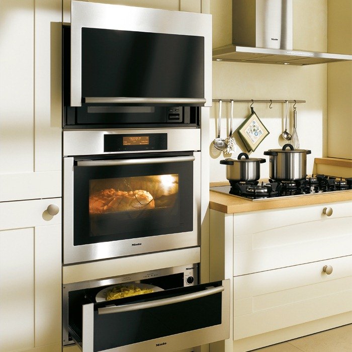 Es gibt auch Drei-in-One-Geräte dieses Typs, sie werden oft als ein harmonisches Trio bezeichnet. In diesem Fall enthält das Paket auch ein Kochfeld, Gas oder Elektro.