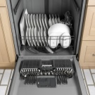 Nach dem Anschließen an kaltes Wasser, Abwasser und Elektrizität startet der Geschirrspüler im Testmodus, d.h. ohne Geschirr. Dies überprüft die Zeit für das Füllen mit Wasser und seine Entladung, das Fehlen von Leckagen an den Verbindungsstellen. Wenn der Testmodus ohne Probleme bestanden hat, kann das Gerät verwendet werden.