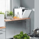Viele Modelle haben Standardmaße speziell für das Headset, so dass sie problemlos in die fertige Küche integriert werden können. Die Frontplatte in Kombination mit den unteren Schränken, dem Herd und der Waschmaschine wird das Aussehen der Küchenmöbel-Fassade nicht im geringsten stören.