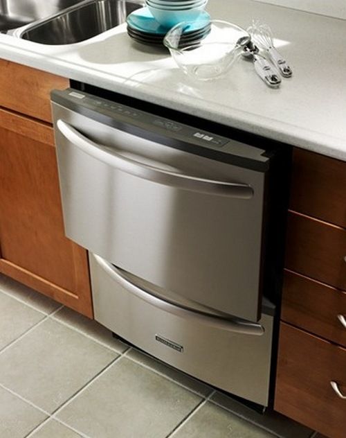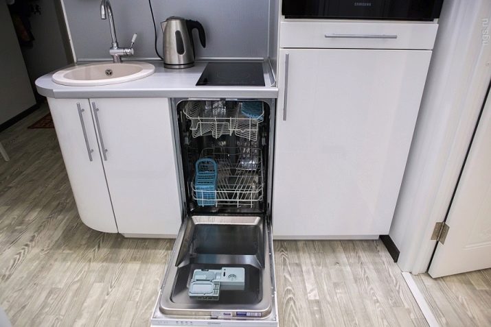 Schmale Geschirrspülmaschinen gelten als unglaublich kompakt, aber ihre Größe hat keinen Einfluss auf ihre Funktionalität.Sie können solche Geräte in jedem Teil der Küche platzieren, der für Sie geeignet ist. Der gebräuchlichste Platz für eine Spülmaschine ist der Platz neben der Spüle.