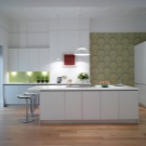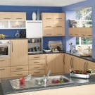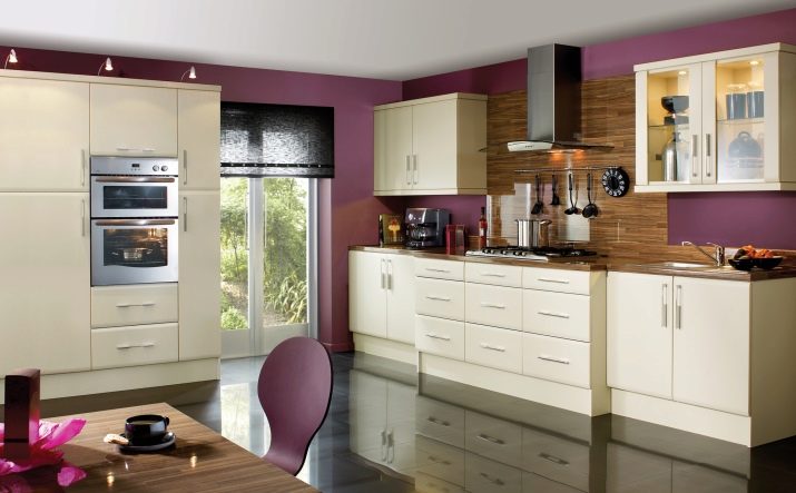 In dem Fall, in dem MDF-Platten für die Küche verwendet werden, ist es möglich, eine Vielzahl von Farben zu erhalten, die vollständig mit Haltbarkeit und Festigkeit sind. MDF wird aus Holzstaub hergestellt und gilt als umweltfreundliches Material. Dank der Beschichtung mit PVC-Folie nimmt es keine Feuchtigkeit auf, ist dampfbeständig und leicht zu reinigen. Die Oberfläche dieses Materials hat eine spektakuläre Brillanz und moderne Farben machen es hell und angenehm.
