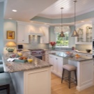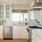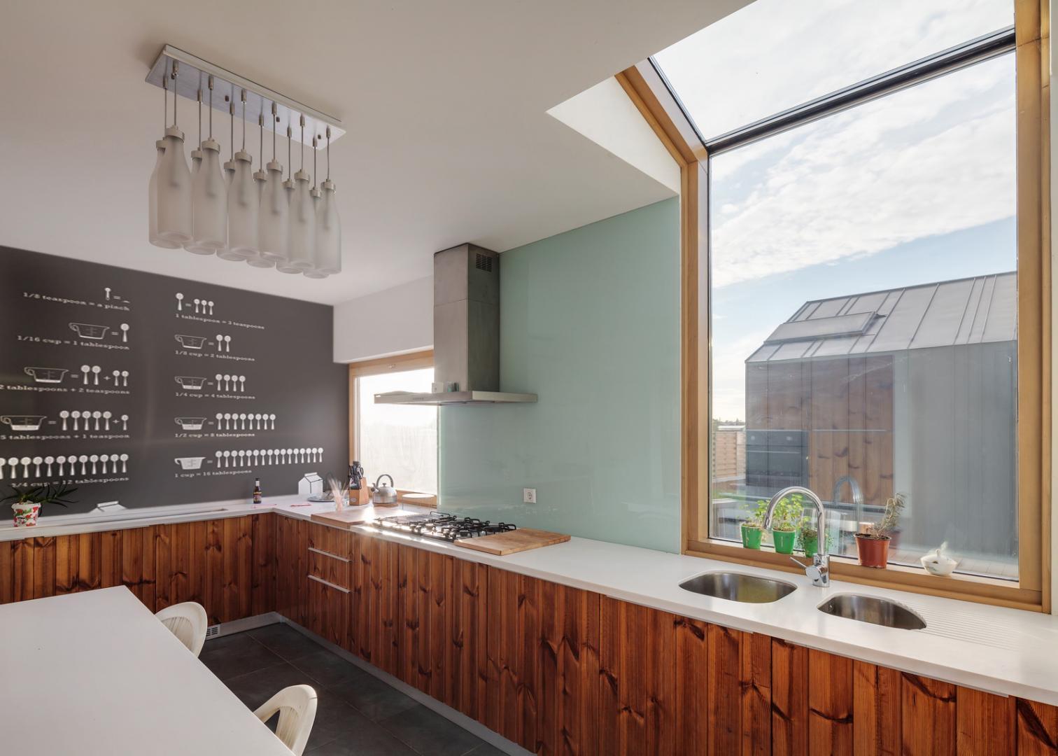 In einer Wohnung mit Sanierung oder in einem privaten Haus können Sie eine Küche mit zwei Fenstern an einer Wand oder mit zwei Fenstern an verschiedenen, normalerweise angrenzenden Wänden schaffen. Zwei Fenster machen die Küche leichter und geräumiger, so dass Sie Gestaltungsmöglichkeiten im Stil von "Country", italienischer oder klassischer Hausmannskost kreieren können.